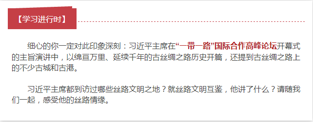201397日,习近平在哈萨克斯坦纳扎尔巴耶夫大学演讲时说:“我的家乡陕西,就位于古丝绸之路的起点。站在这里,回首历史,我仿佛听到了山间回荡的声声驼铃,看到了大漠飘飞的袅袅孤烟。这一切,让我感到十分亲切。”