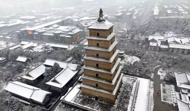 ▲银装素裹的西安大雁塔 新华社记者陶明摄