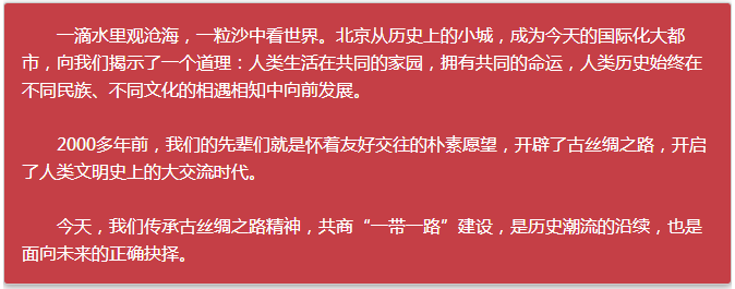举办本届“一带一路”国际合作高峰论坛的北京,今天的发展也与丝路精神息息相通。