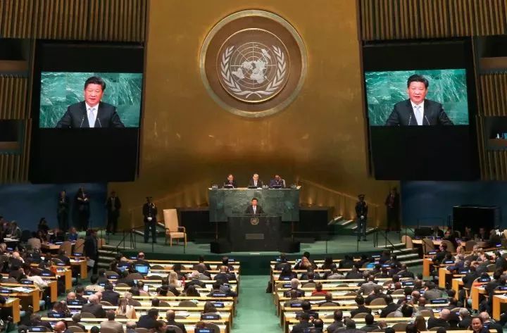 2015年9月28日,国家主席习近平在纽约联合国总部出席第70届联合国大会一般性辩论并发表题为《携手构建合作共赢新伙伴 同心打造人类命运共同体》的重要讲话。 新华社记者庞兴雷摄 约140位国家元首或政府首脑出席联大一般性辩论,17位国家领导人28日上午发表政策讲话,习近平主席收获了次数最多、最热烈的掌声。 在联合国这样的场合发表演讲,与会者用掌声,表达了对中国大国担当精神和习主席大国领袖风范的敬意和钦佩。 深邃思考