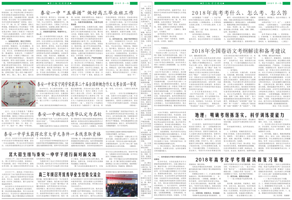 泰安一中校报(2018年第一期)