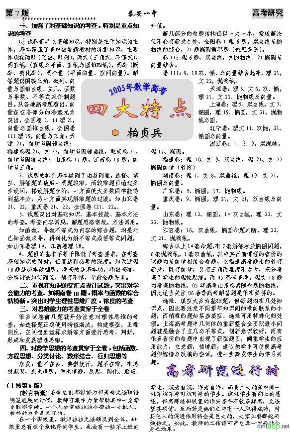 第10期 - 第7版 - 柏贞兵 - 2005年数学高考四大特点