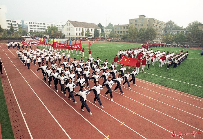2006年11月10日,一中2006年田径运动会在学校新建成的塑胶田径场上隆重举行。鲜艳的跑道上飞驰着运动员的身影、碧绿的草地上跳高健儿腾空而起。一个个纪录被刷新。。。学校体育运动又跨上了一个崭新的台阶。