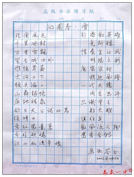 2006一中艺术周师生书法展
