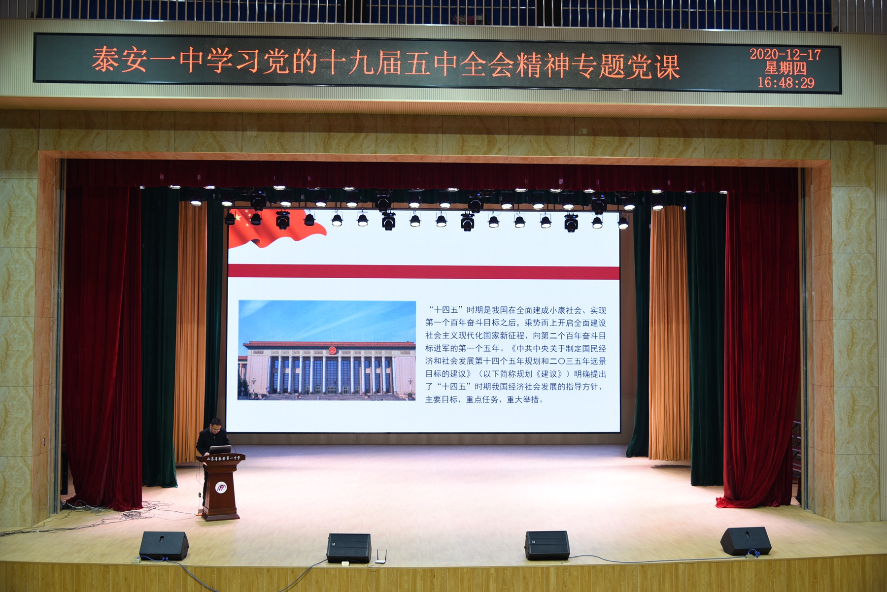 为深入学习习近平总书记在党的十九届五中全会上的重要讲话和全会文件精神,12月17日,学校党委书记靳启华为新校区全体党员干部上专题党课。