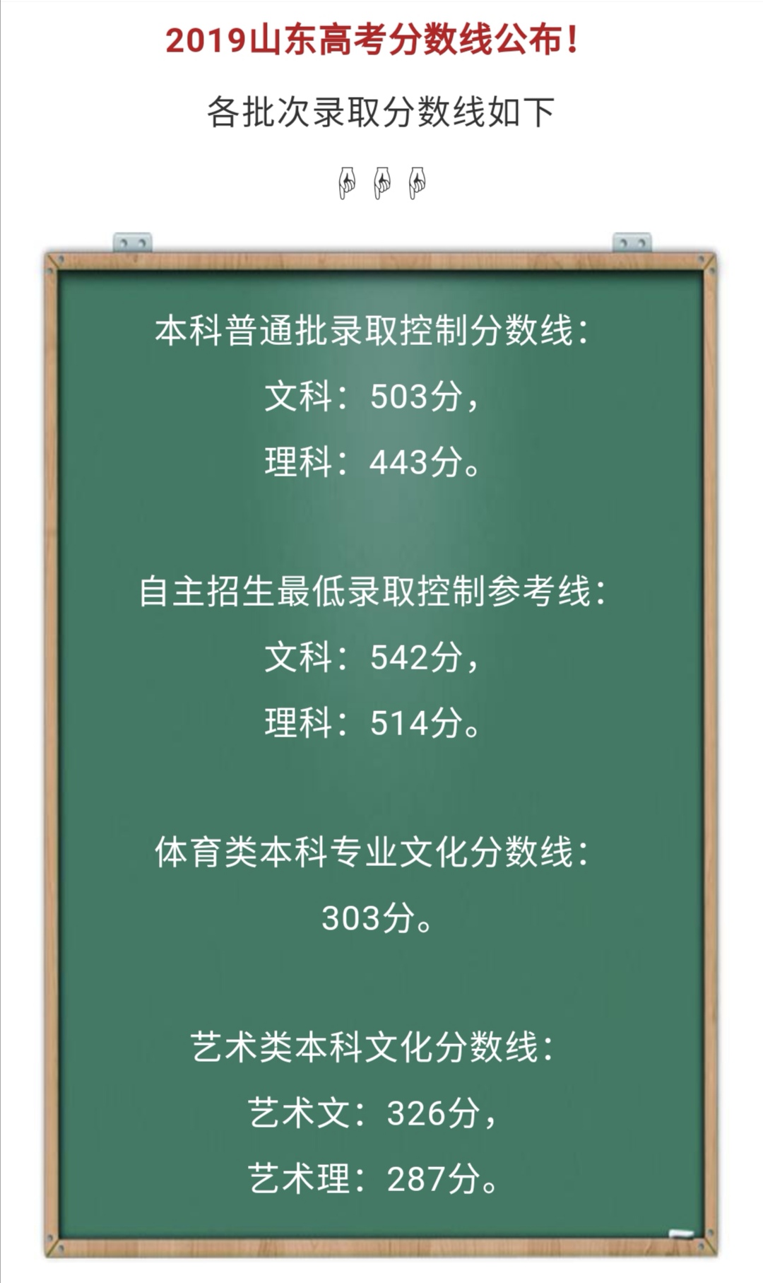 2019山东高考本科分数线